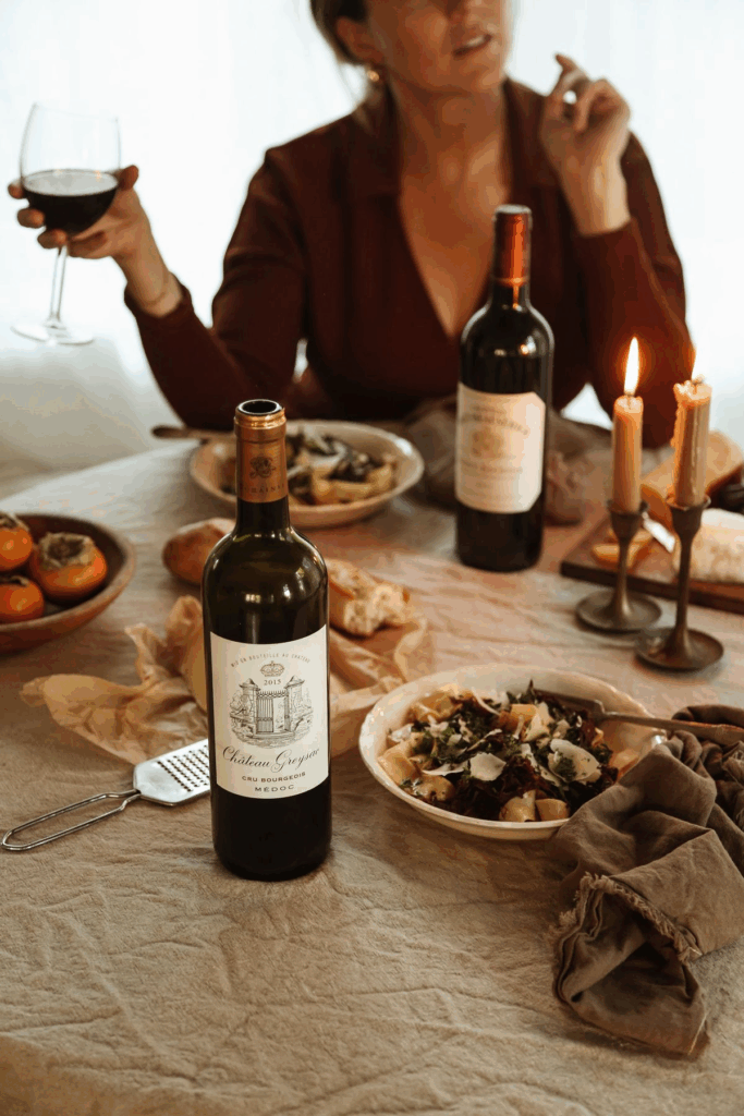 If you don’t drink alcohol, swap the wine for a hot chocolate bar with toppings like marshmallows, whipped cream, shaved chocolate, cinnamon, and caramel drizzle. Arrange everything on a board or tray, dim the lights, put on a playlist, and taste your way through each combo.